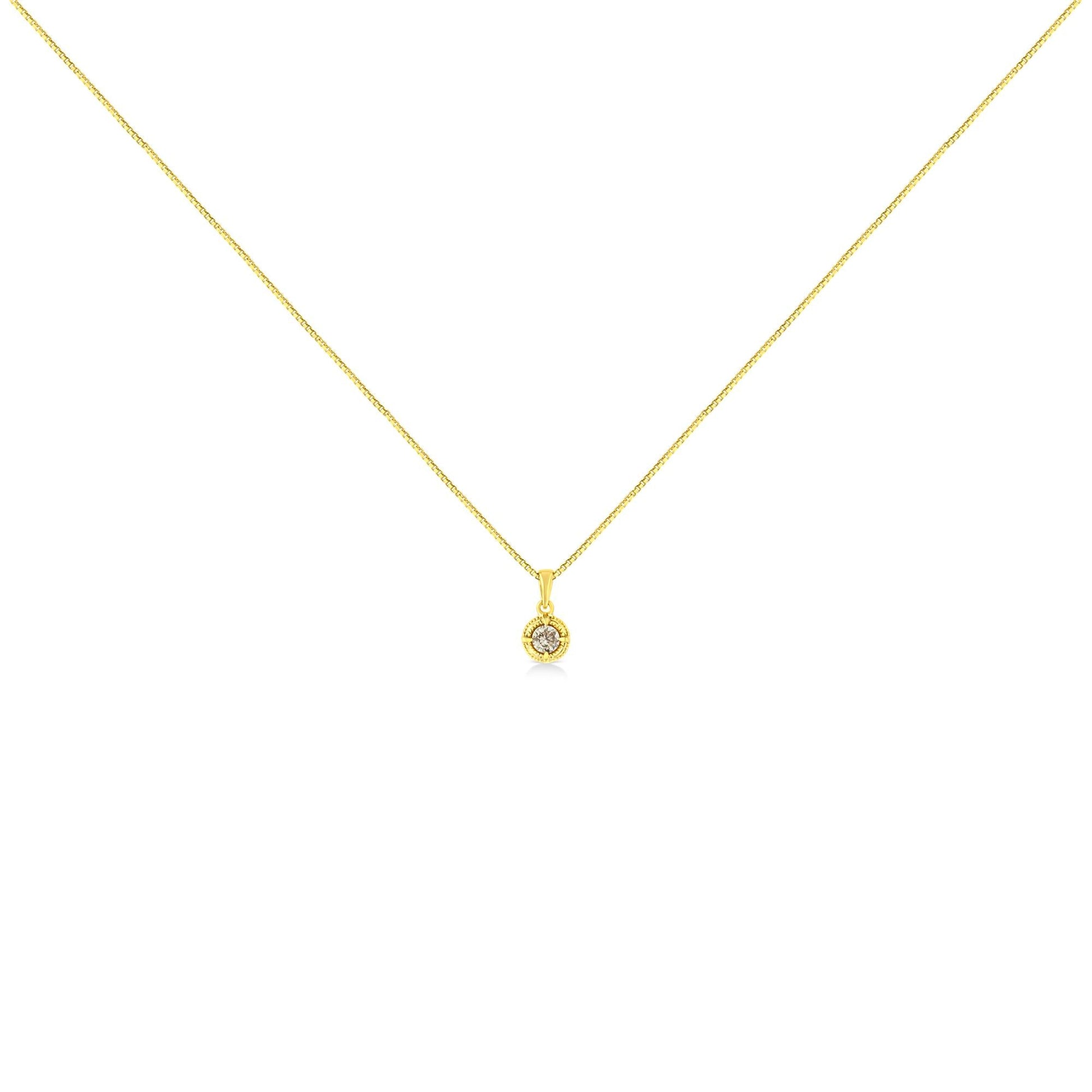14K Yellow Gold Plated .925 Sterling Silver Brilliant Round Cut Diamond Solitaire Milgrain 18" Pendant Necklace